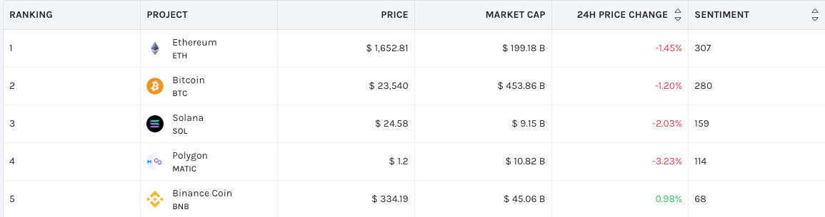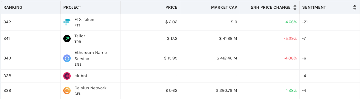 This is the ranking snapshot at time of writing. It is updated hourly on the Twitter sentiment ranking page