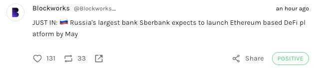 Russia’s largest bank, Sberbank, expects to launch DeFi platform by May