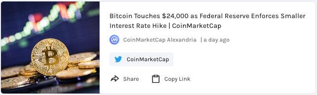 Bitcoin touches $24k and other cryptos rally as Fed only raises rates 25 bps and indicates rate slow down