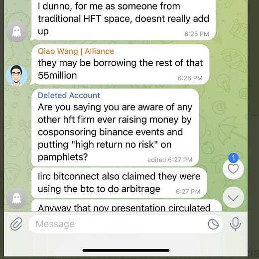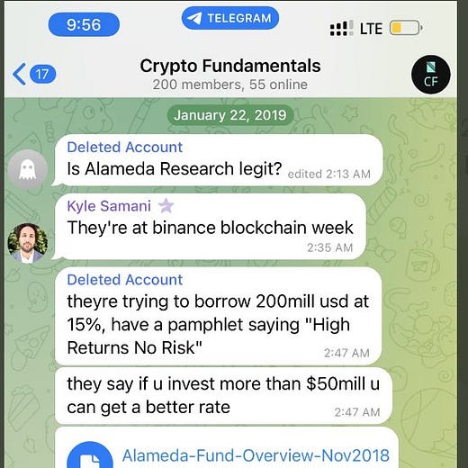 Chatter from a 2019 Telegram chat shows Su Zhu questioning Alameda