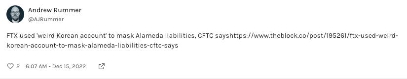 FTX masked Alameda’s liabilities by using a “weird Korean account”