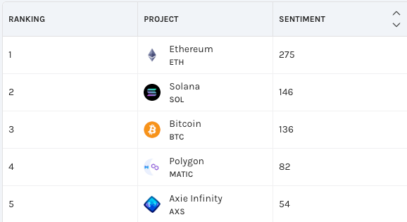 These are the top of mind coins today for crypto twitter. It is updated hourly on the Twitter sentiment ranking page