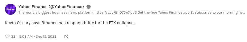 Kevin O'Leary blames Binance for FTX collapse, Senators introduce a bill that's negative for crypto